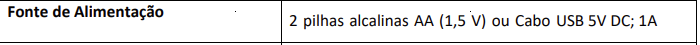 Verifique se utiliza pilhas alcalinas e o cabo USB com as especificações técnicas indicadas.
