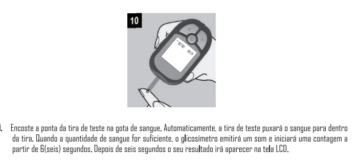Poderá começar o teste assim que o símbolo da gota de sangue começar a piscar no visor.